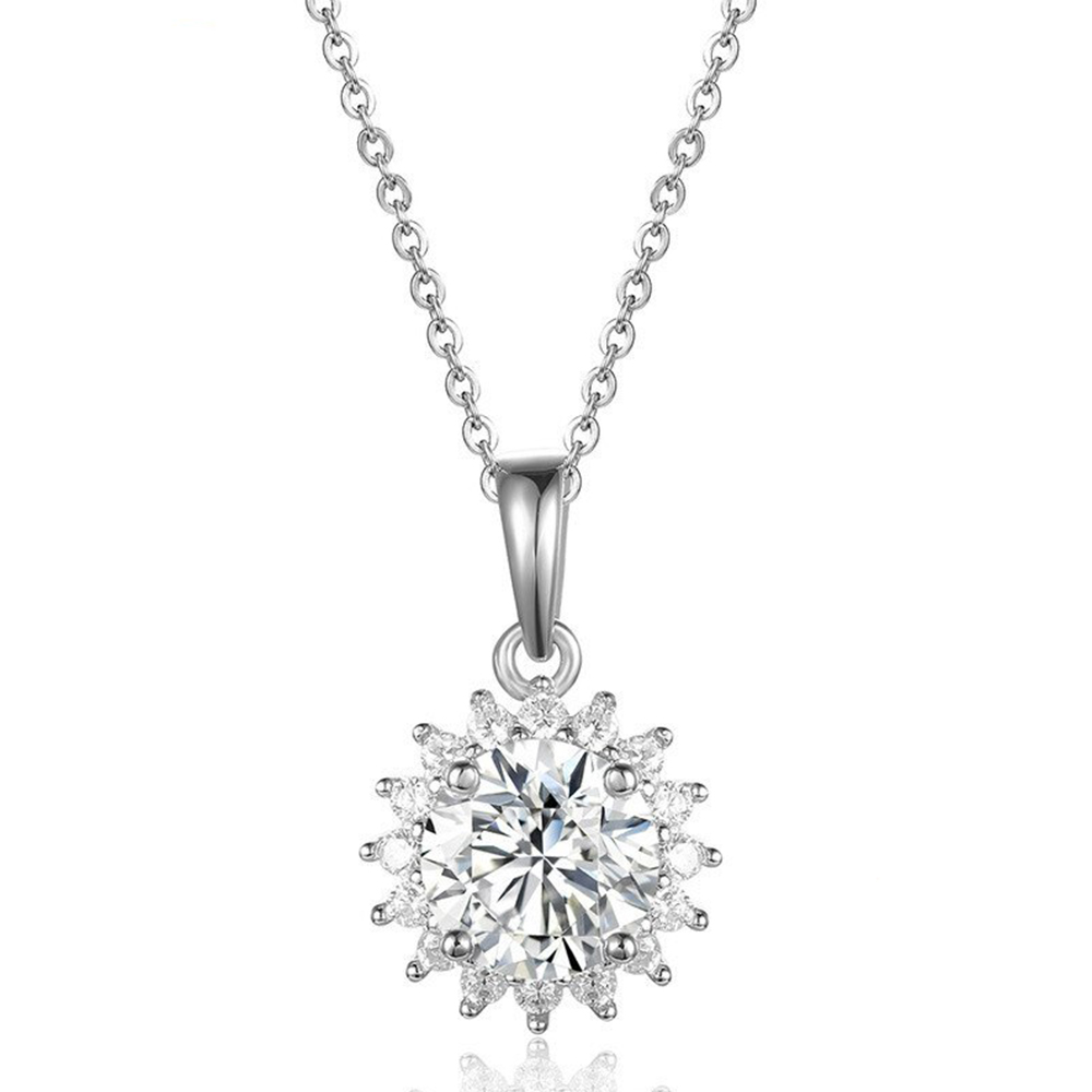 Necklace 1ct 6.5mm EF VVS Round 18K 925 Silver Diamond