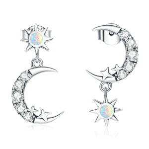 Silver Shining Star and Moon Stud Earrings for Women